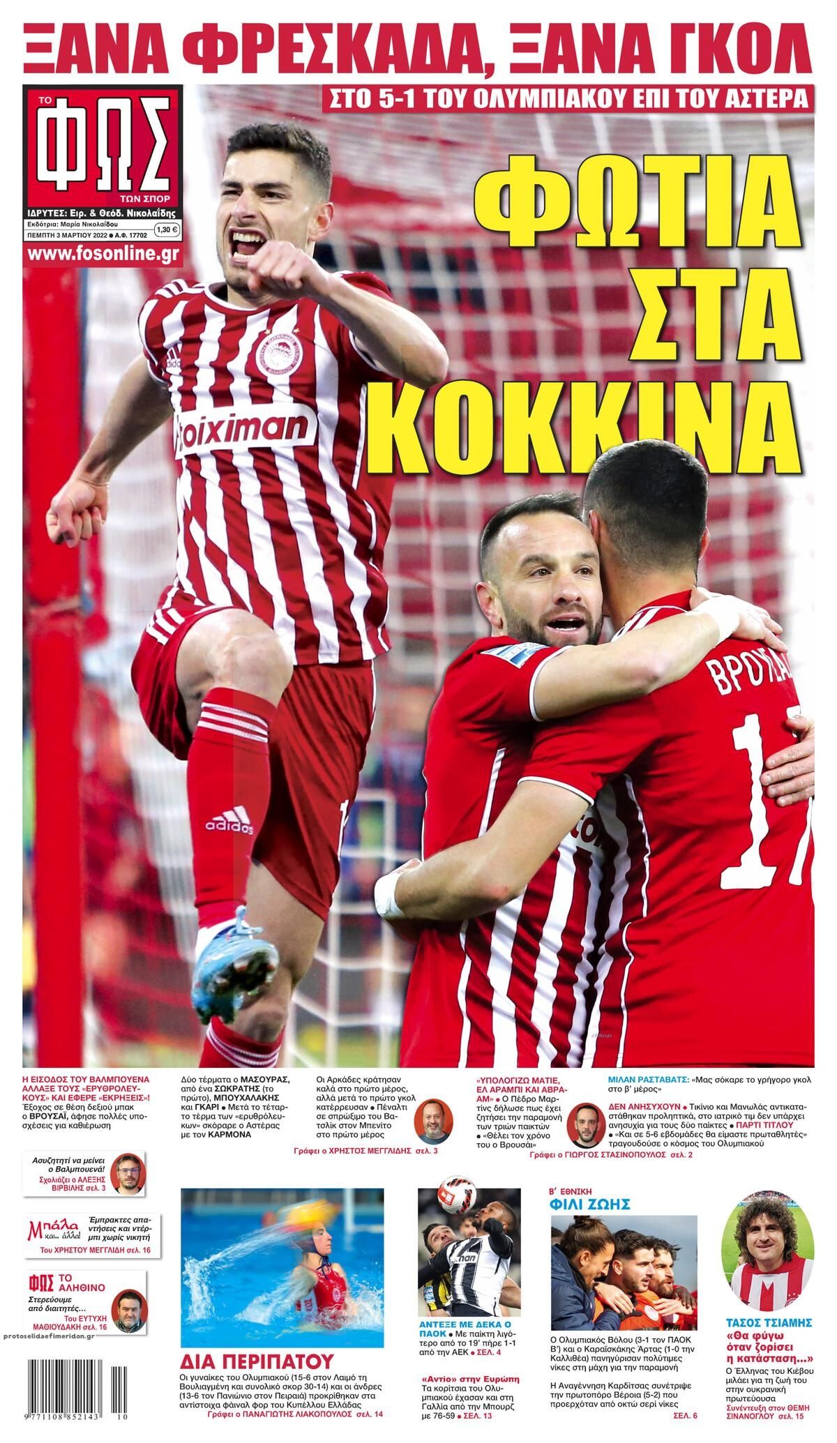 Διαβάστε το πρωτοσέλιδο της εφημερίδας Φως των σπορ