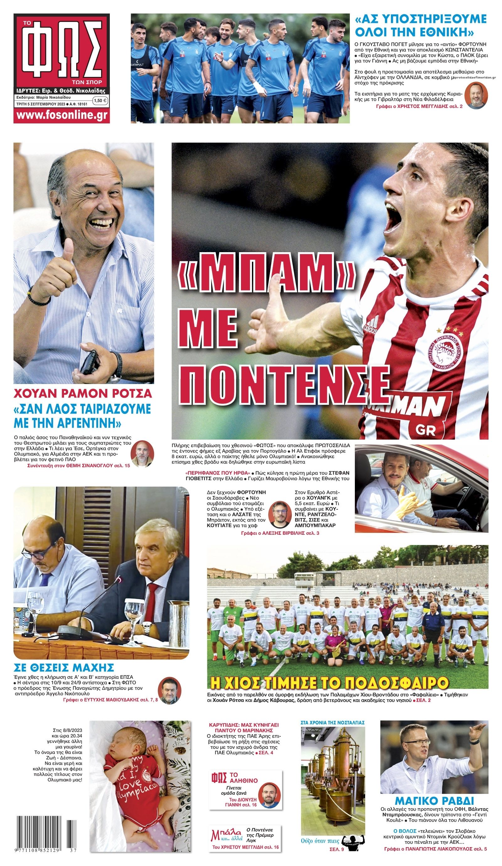 Διαβάστε το πρωτοσέλιδο της εφημερίδας Φως των σπορ