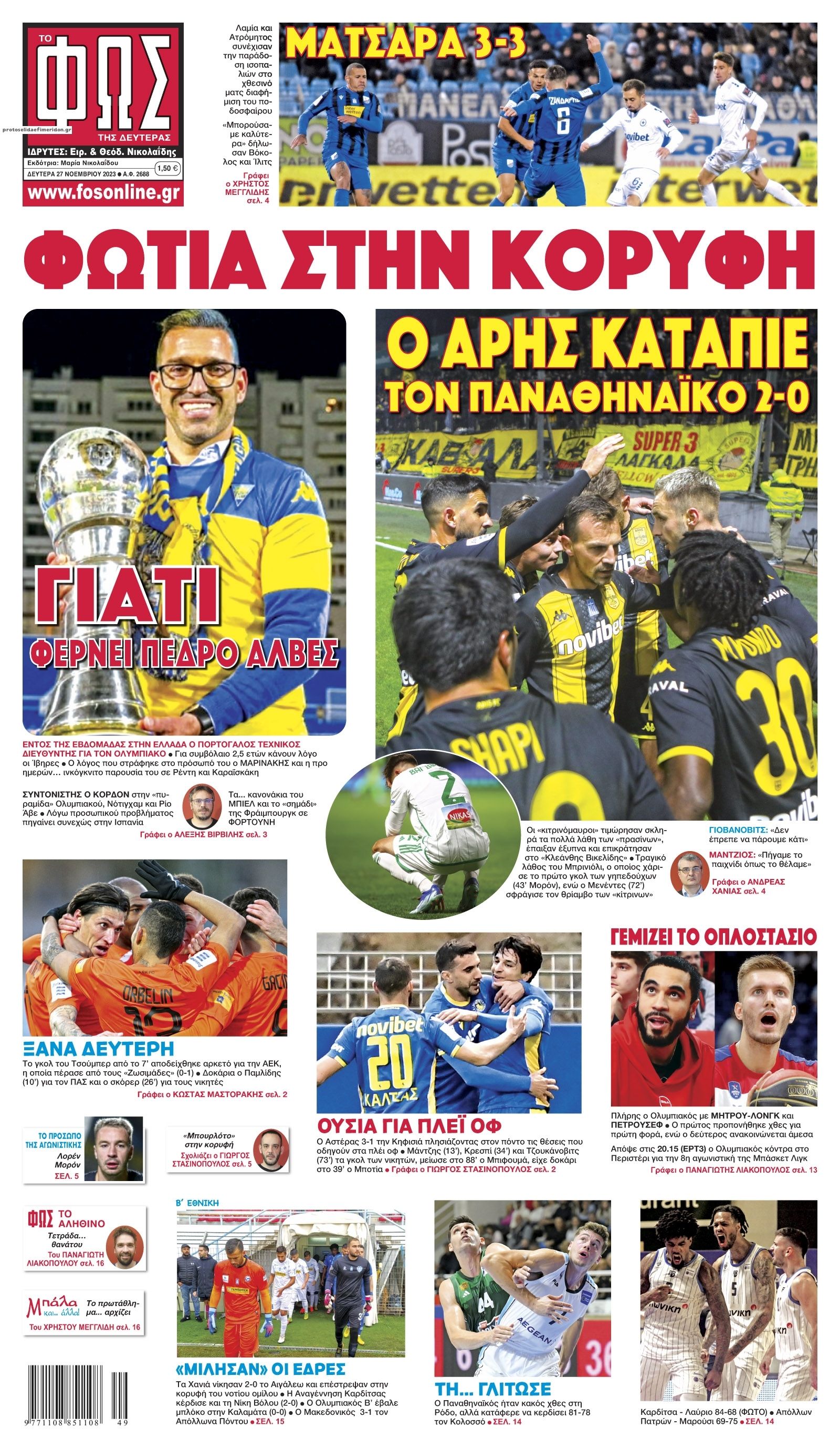 Διαβάστε το πρωτοσέλιδο της εφημερίδας Φως των σπορ