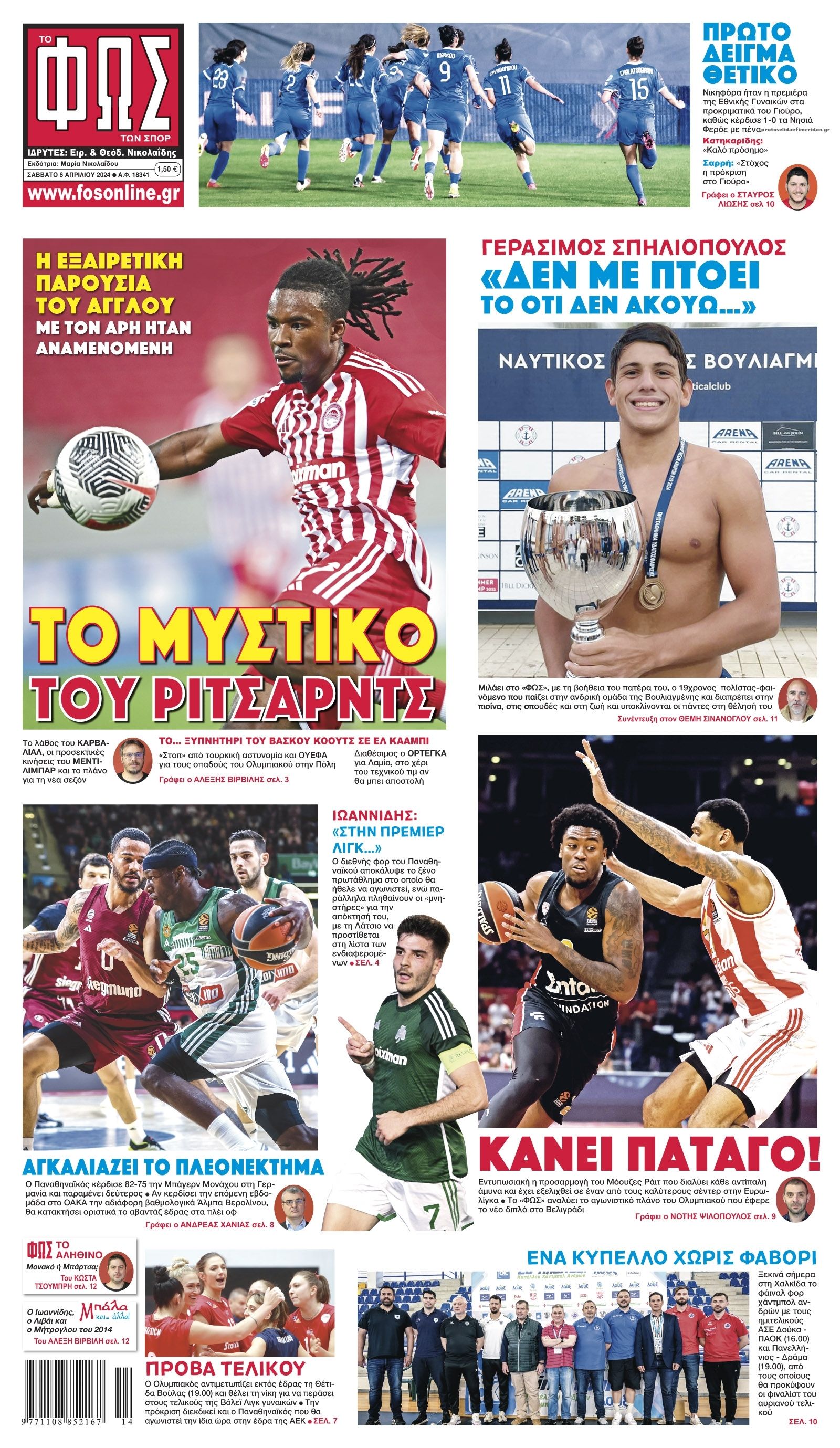 Διαβάστε το πρωτοσέλιδο της εφημερίδας Φως των σπορ