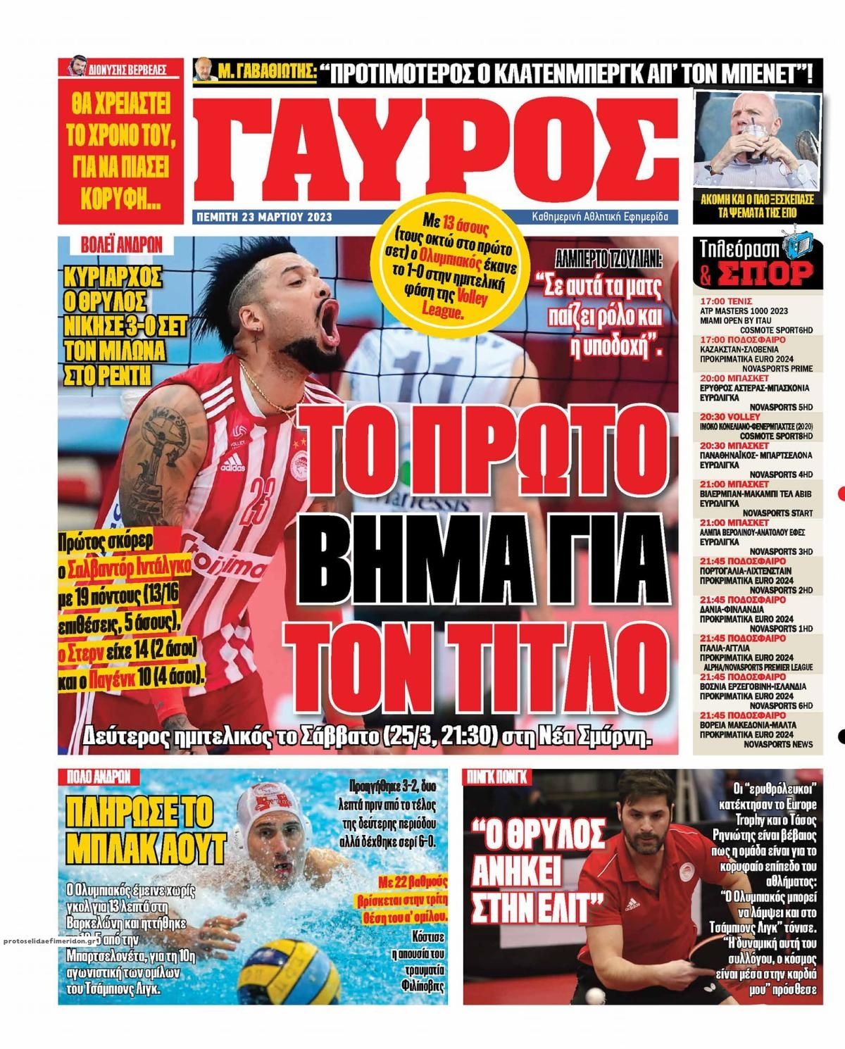 Διαβάστε το πρωτοσέλιδο της εφημερίδας Κόκκινος Πρωταθλητής