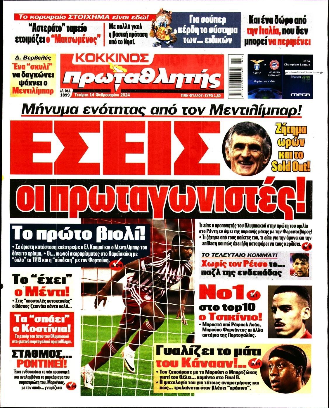 Διαβάστε το πρωτοσέλιδο της εφημερίδας Κόκκινος Πρωταθλητής
