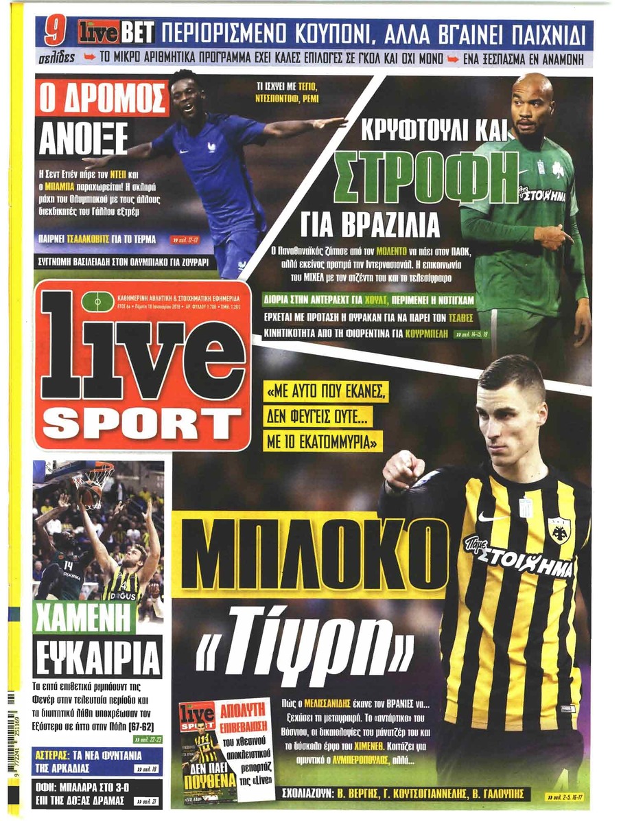 Διαβάστε το πρωτοσέλιδο της εφημερίδας Livesport