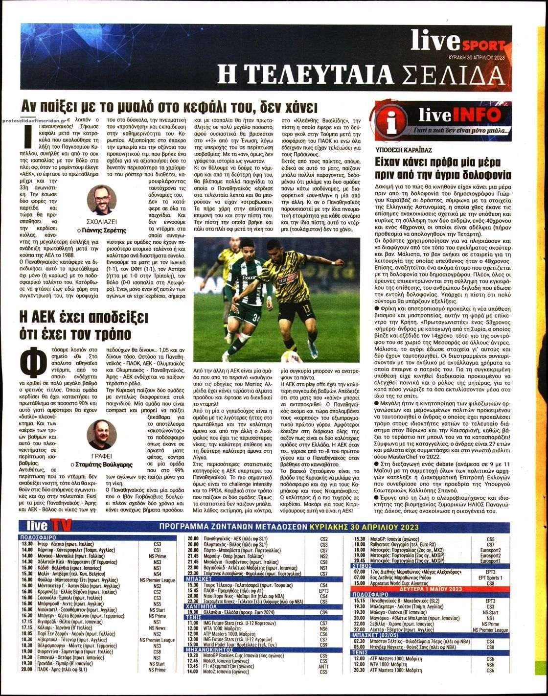 Διαβάστε το πρωτοσέλιδο της εφημερίδας Livesport