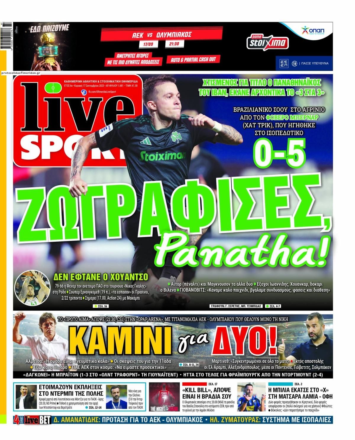 Διαβάστε το πρωτοσέλιδο της εφημερίδας Livesport
