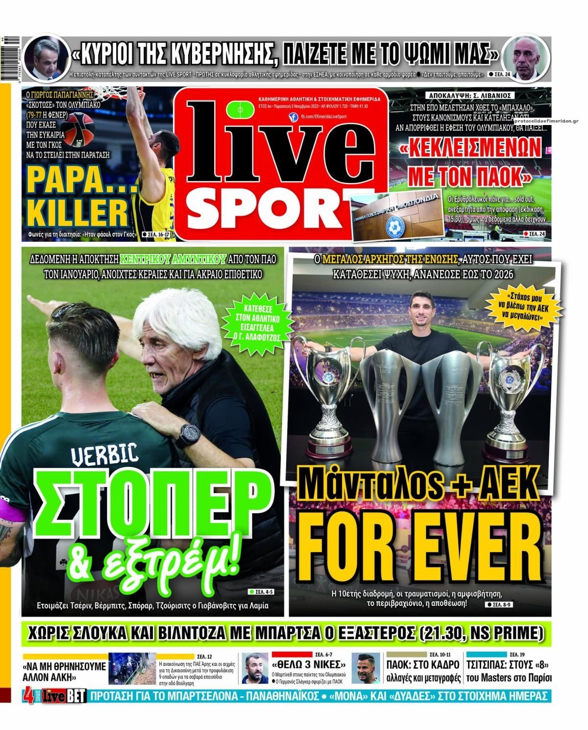 Διαβάστε το πρωτοσέλιδο της εφημερίδας Livesport