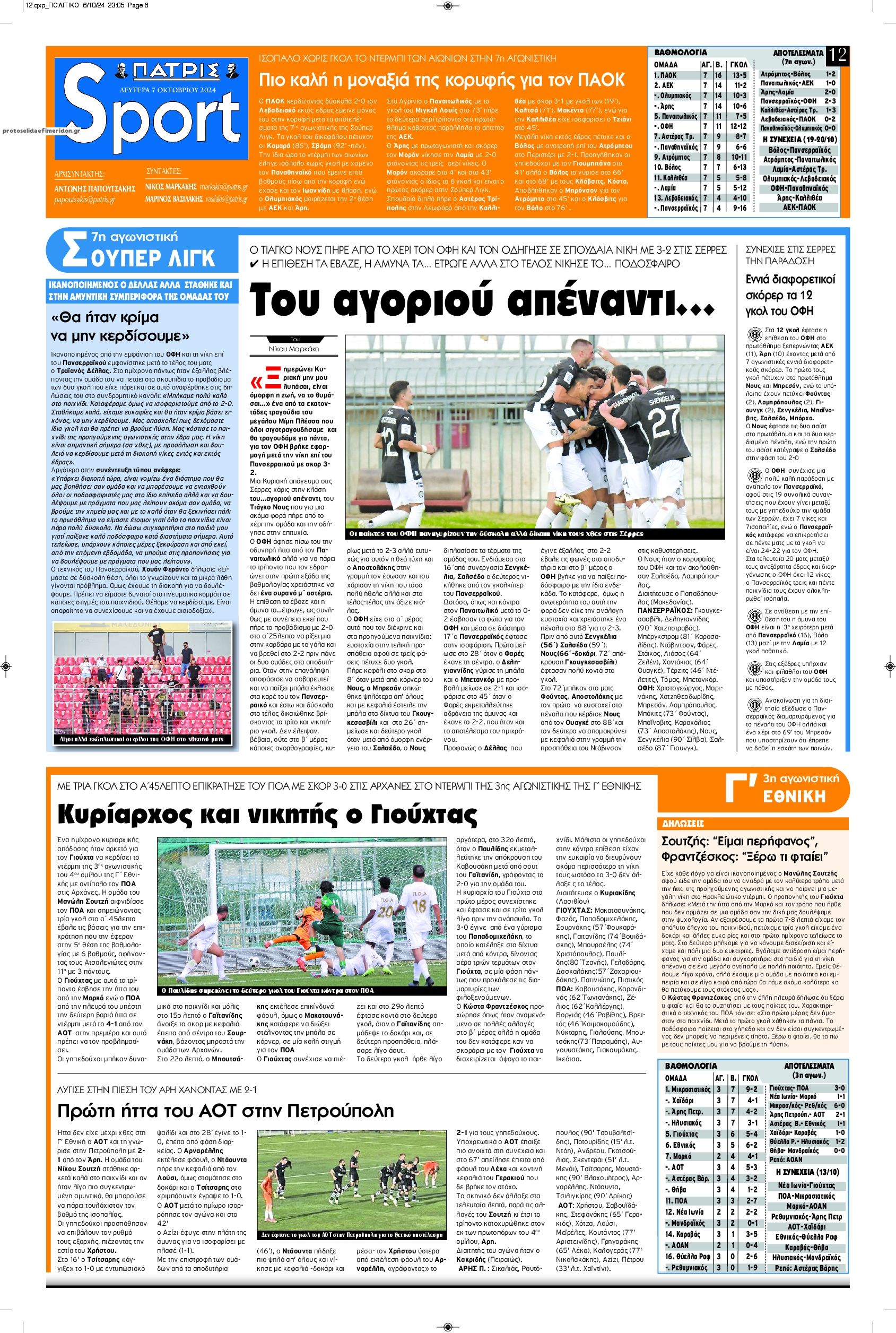 Διαβάστε το πρωτοσέλιδο της εφημερίδας Πατρίς Σπορ