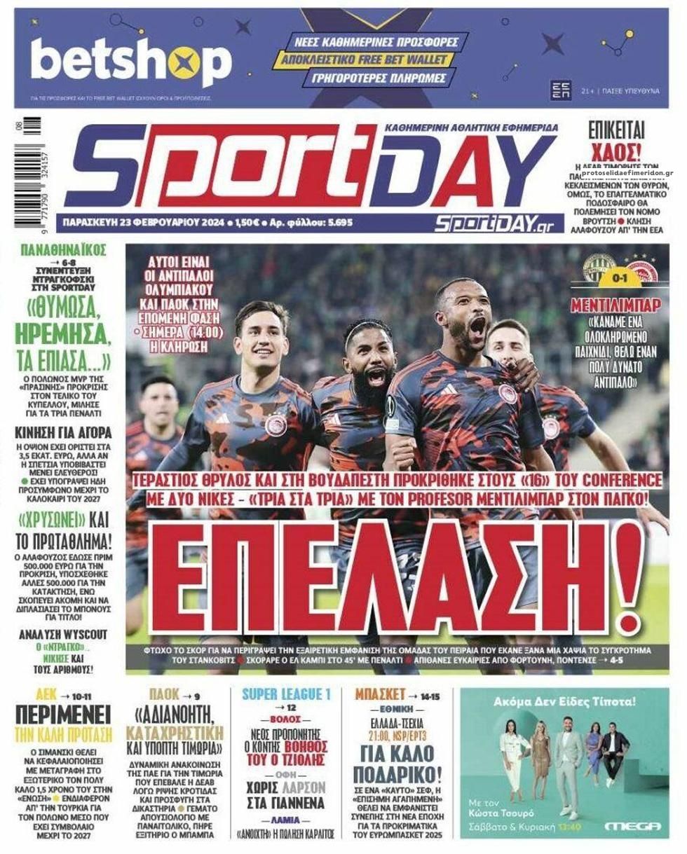 Διαβάστε το πρωτοσέλιδο της εφημερίδας Sportday