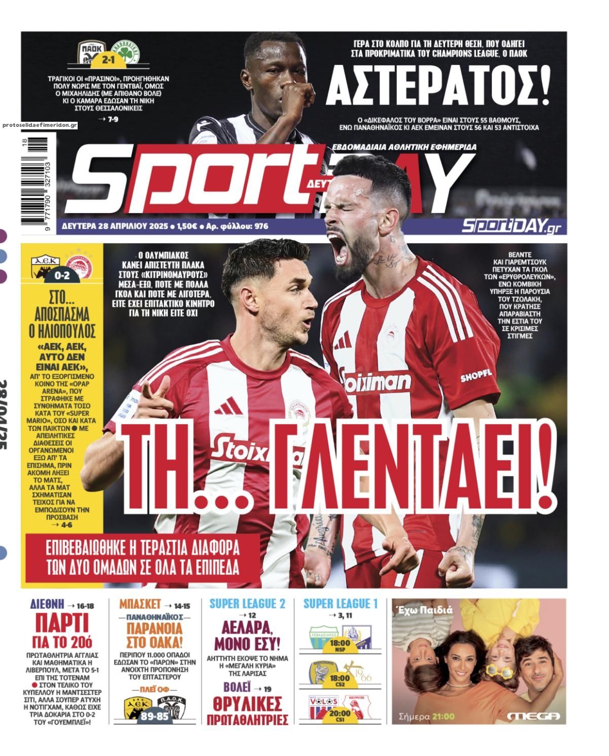 Διαβάστε το πρωτοσέλιδο της εφημερίδας Sportday