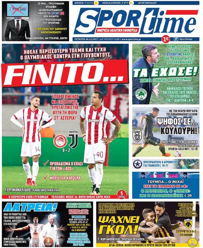 Διαβάστε το πρωτοσέλιδο της εφημερίδας Sportime