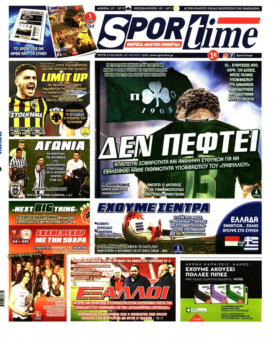 Διαβάστε το πρωτοσέλιδο της εφημερίδας Sportime