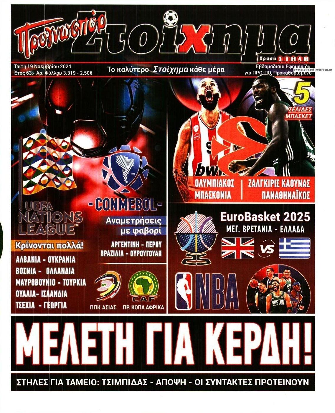 Διαβάστε το πρωτοσέλιδο της εφημερίδας Στοίχημα