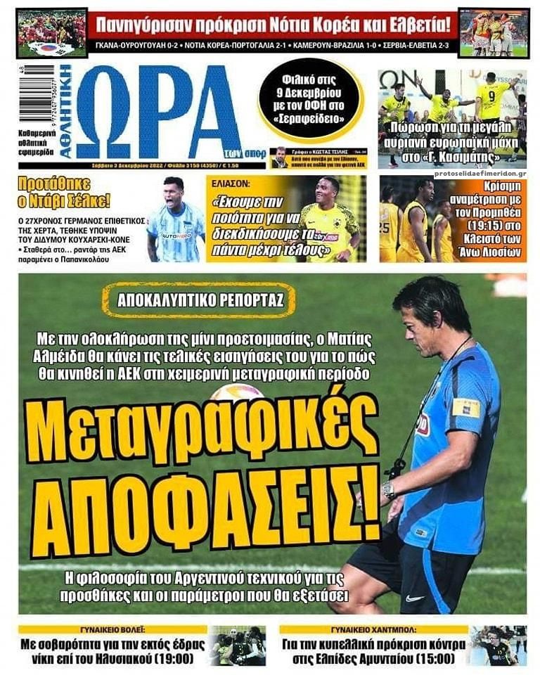 Διαβάστε το πρωτοσέλιδο της εφημερίδας Η ώρα των Σπορ