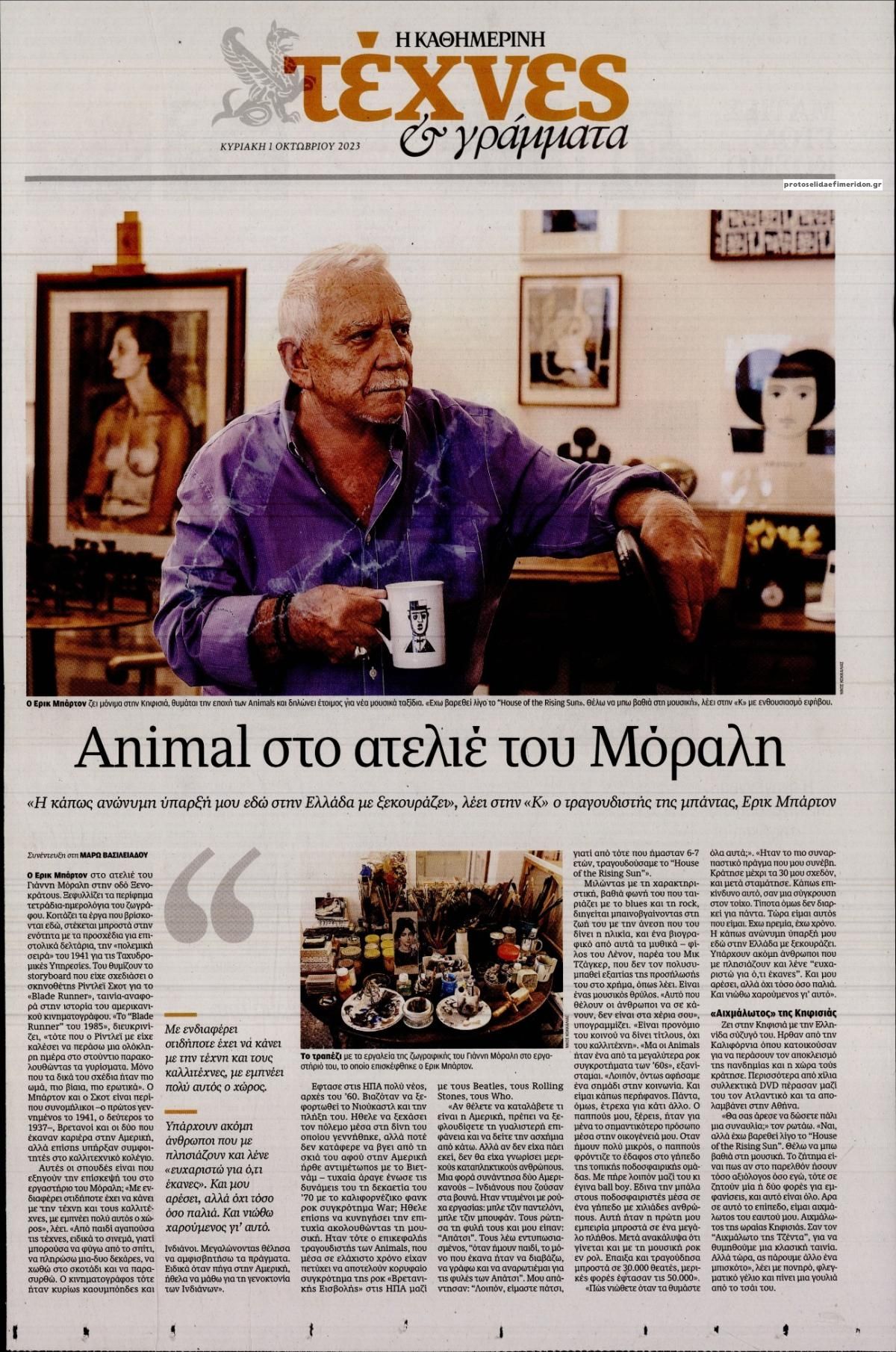 Διαβάστε το πρωτοσέλιδο της εφημερίδας Η ΚΑΘΗΜΕΡΙΝΗ - ΤΕΧΝΕΣ ΚΑΙ ΓΡΑΜΜΑΤΑ