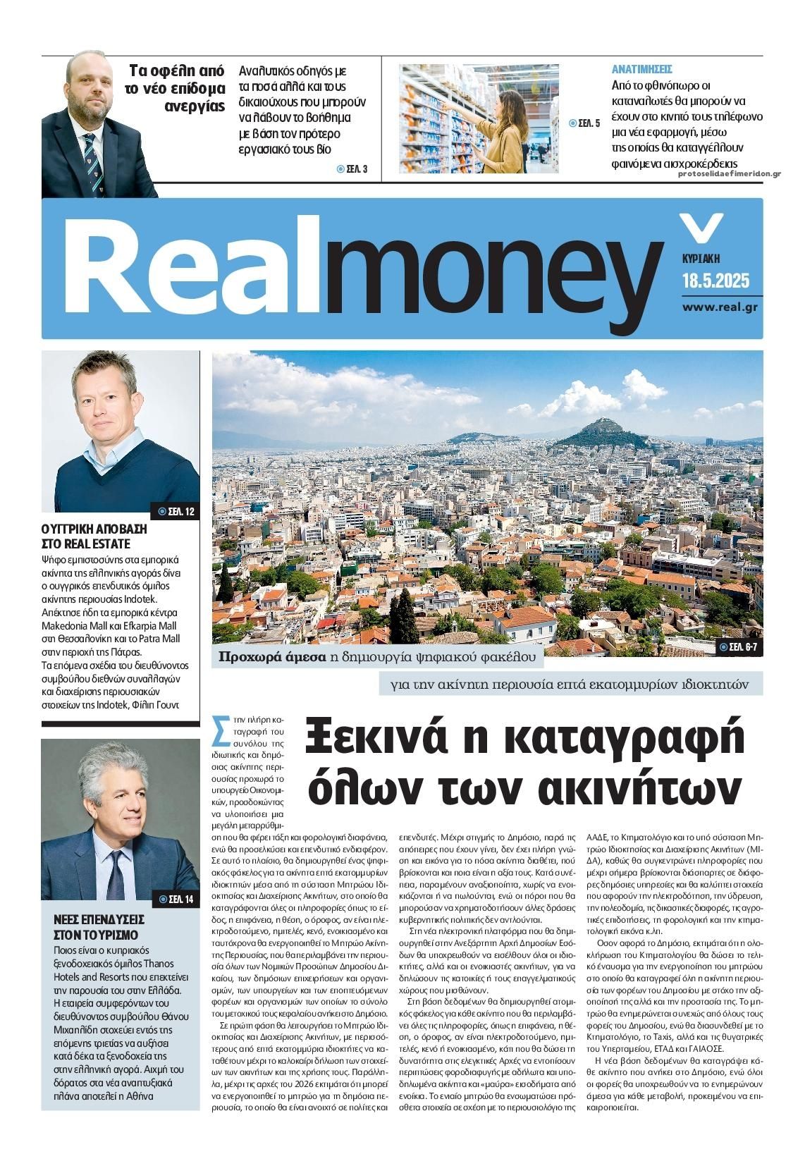 Διαβάστε το πρωτοσέλιδο της εφημερίδας REAL NEWS - MONEY
