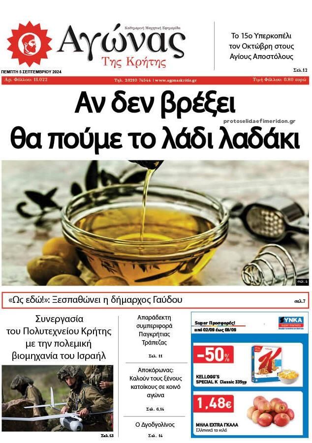 Διαβάστε το πρωτοσέλιδο της εφημερίδας Αγώνας της Κρήτης