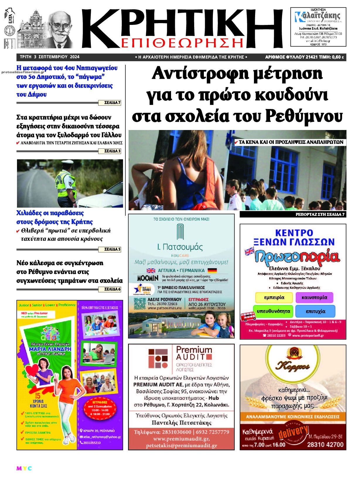 Διαβάστε το πρωτοσέλιδο της εφημερίδας Κρητική Επιθεώρηση