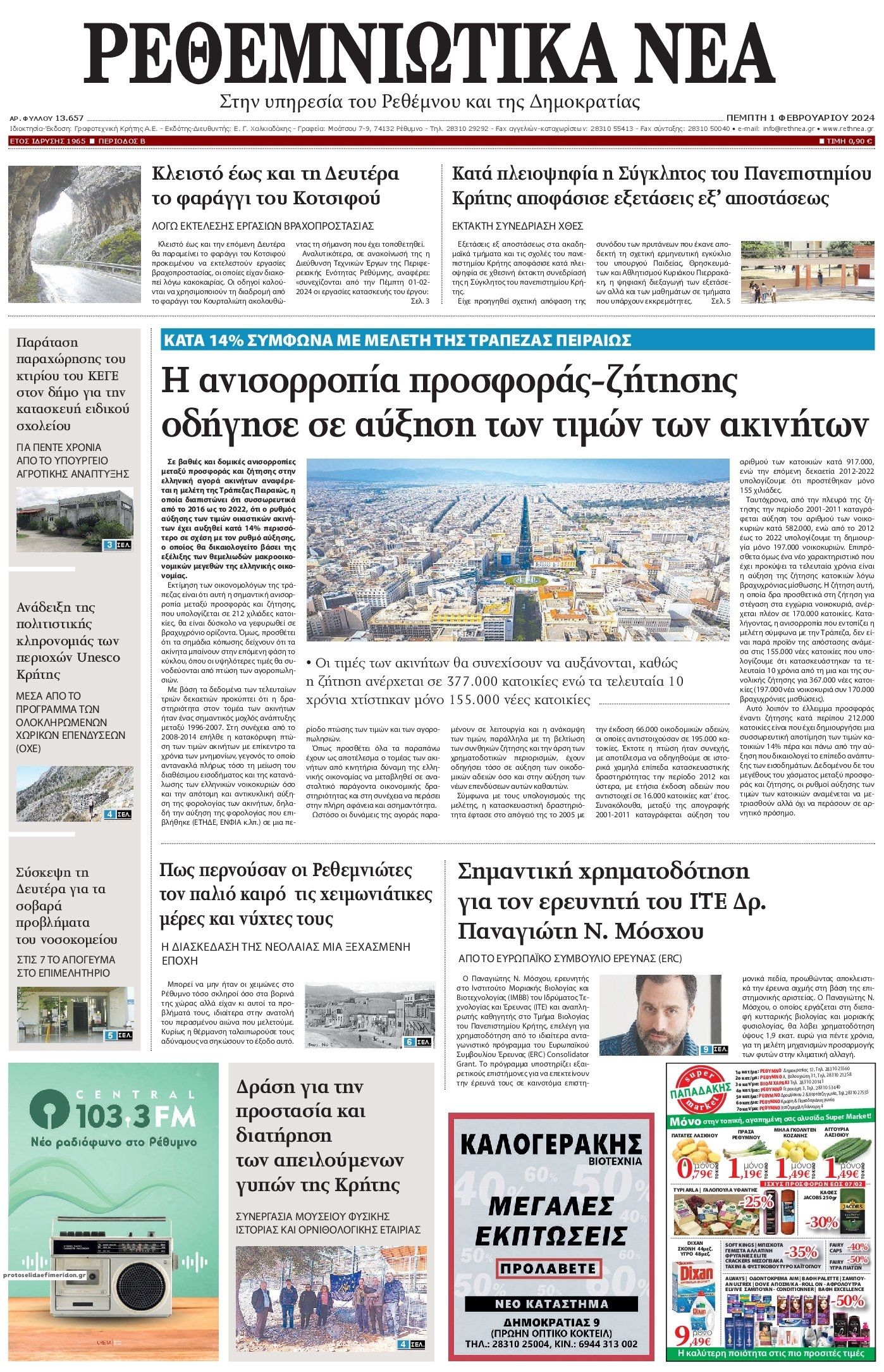 Διαβάστε το πρωτοσέλιδο της εφημερίδας Ρεθεμνιώτικα Νέα