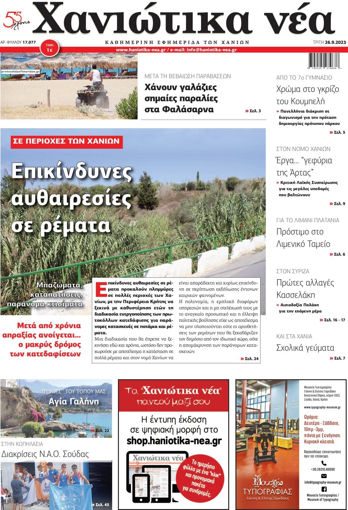 Διαβάστε το πρωτοσέλιδο της εφημερίδας Χανιώτικα Νέα