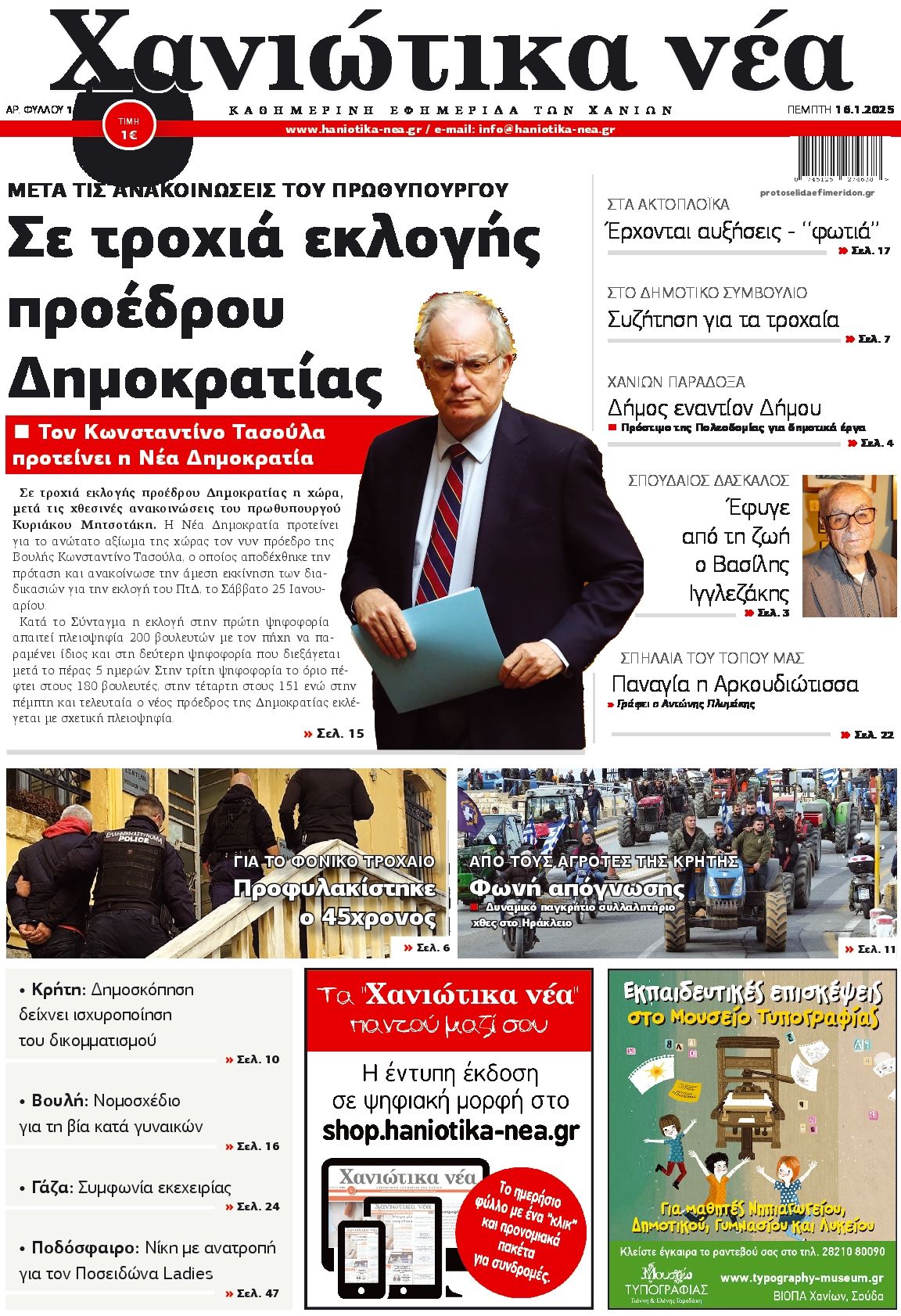 Διαβάστε το πρωτοσέλιδο της εφημερίδας Χανιώτικα Νέα