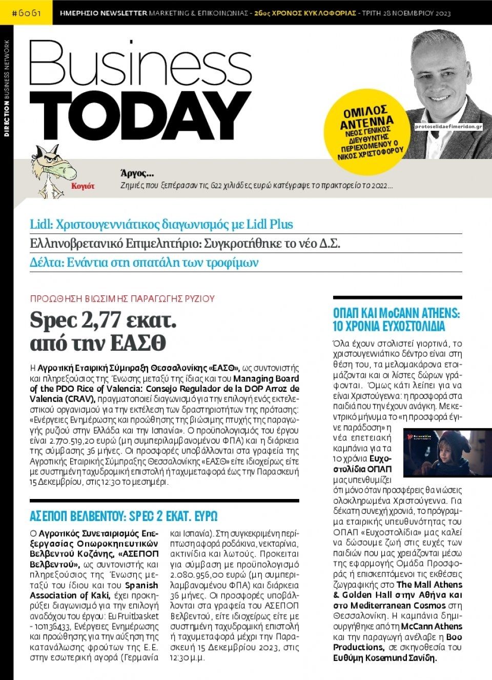 Διαβάστε το πρωτοσέλιδο της εφημερίδας Business Today