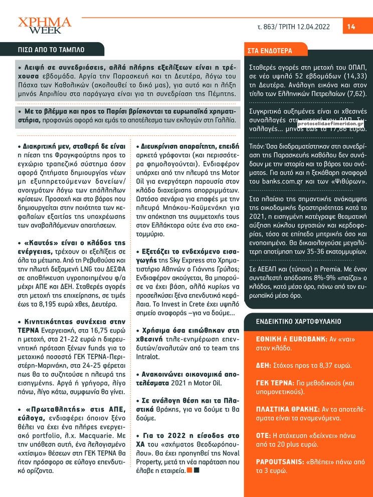 Διαβάστε το πρωτοσέλιδο της εφημερίδας Χρήμα Week
