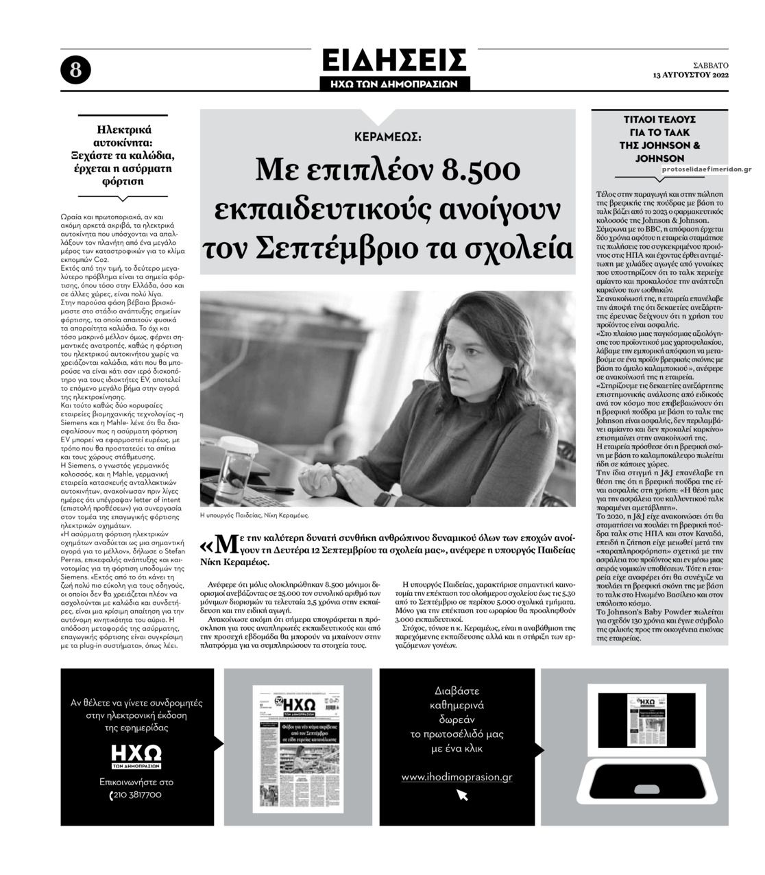 Σε αυτή τη σελίδα θα βρείτε το πρωτοσέλιδο της εφημερίδας Ηχώ που κυκλοφόρησε Σάββατο 13 Αυγούστου 2022. Για να διαβάσετε το πρωτοσέλιδο της εφημερίδας Ηχώ σε μεγαλύτερο μέγεθος κρατήστε το ποντίκι πατημένο πάνω στο μεγάλο πρωτοσέλιδο Ηχώ και σύρετε προς την κατέυθυνση που θέλετε. Για να δείτε το ιστορικό αρχείο της εφημερίδας Ηχώ πατήστε εδώ ή πατήστε από μενού "Αρχείο" και επιλέξτε από τη λίστα Ηχώ.
