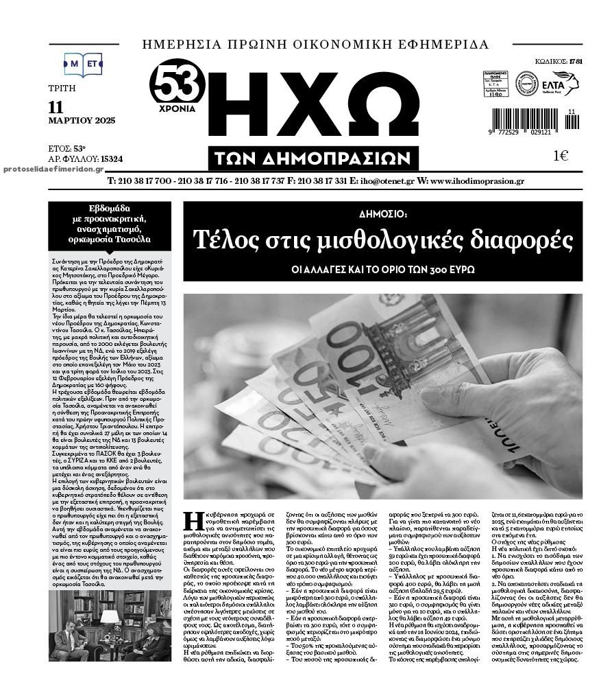 Διαβάστε το πρωτοσέλιδο της εφημερίδας Ηχώ