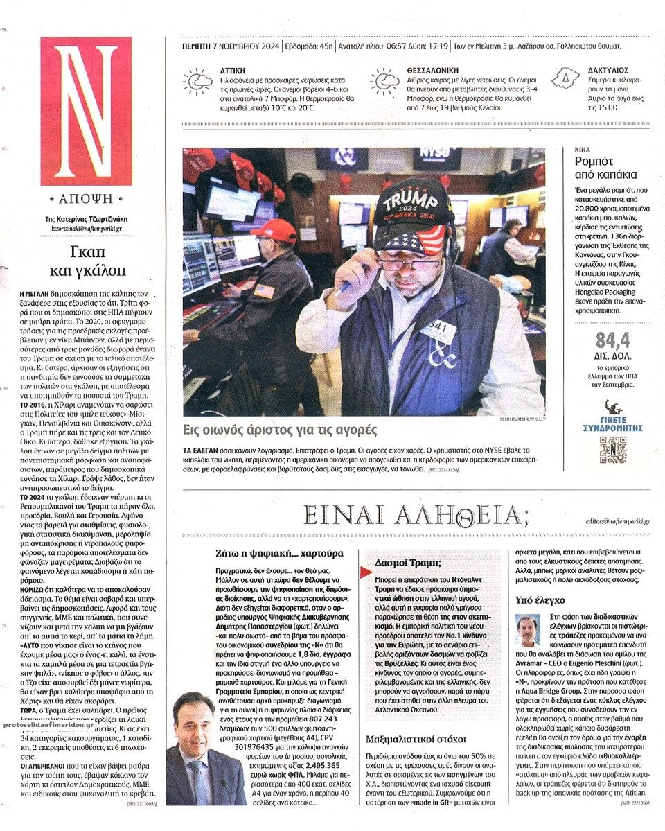 Διαβάστε το πρωτοσέλιδο της εφημερίδας Ναυτεμπορική
