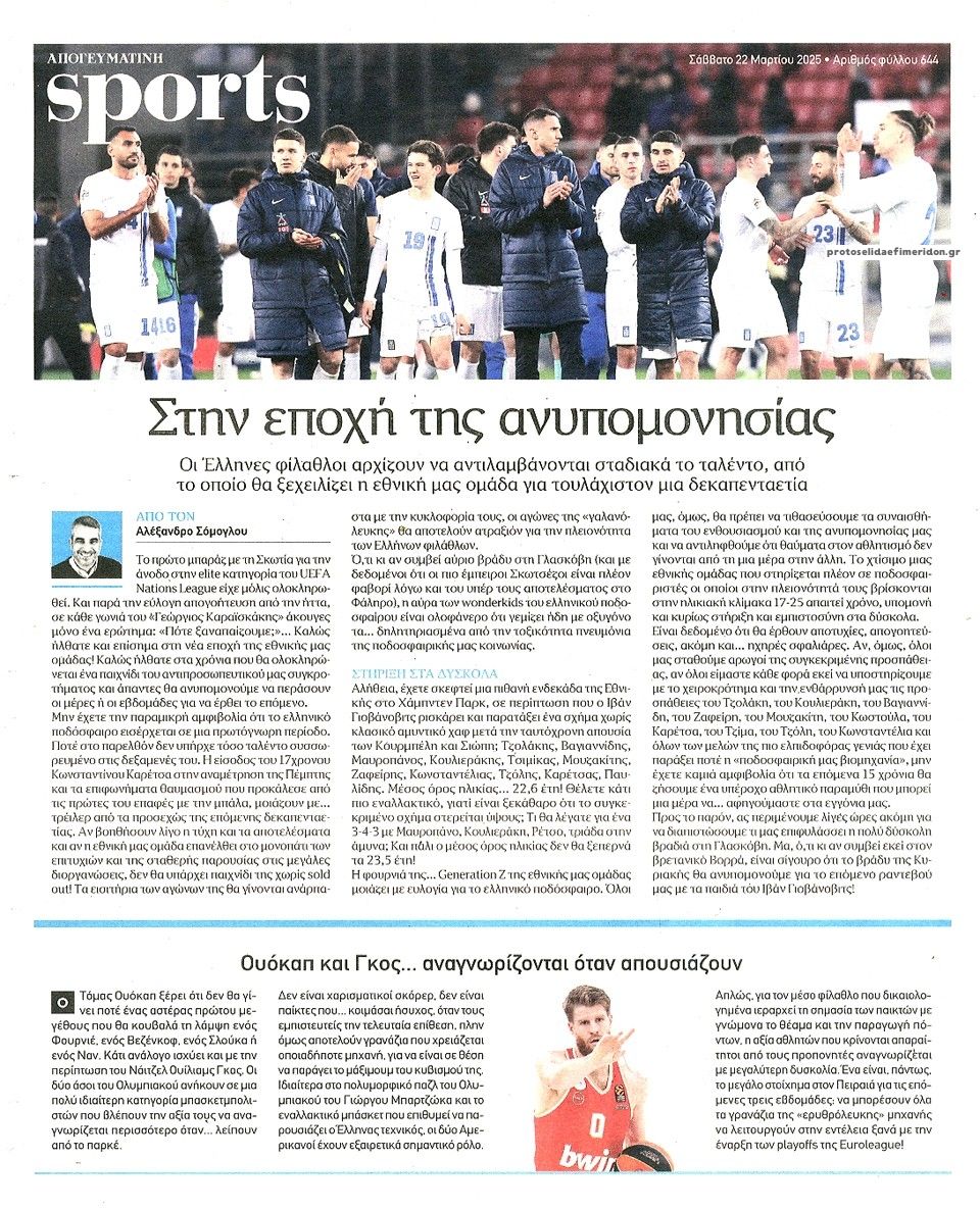 Διαβάστε το πρωτοσέλιδο της εφημερίδας Απογευματινή