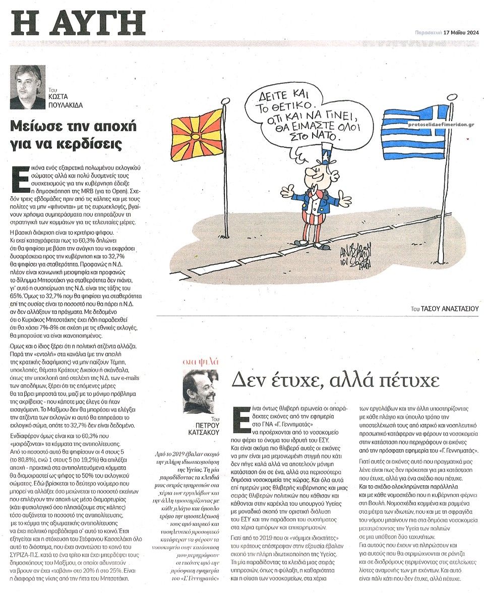 Διαβάστε το πρωτοσέλιδο της εφημερίδας Αυγή
