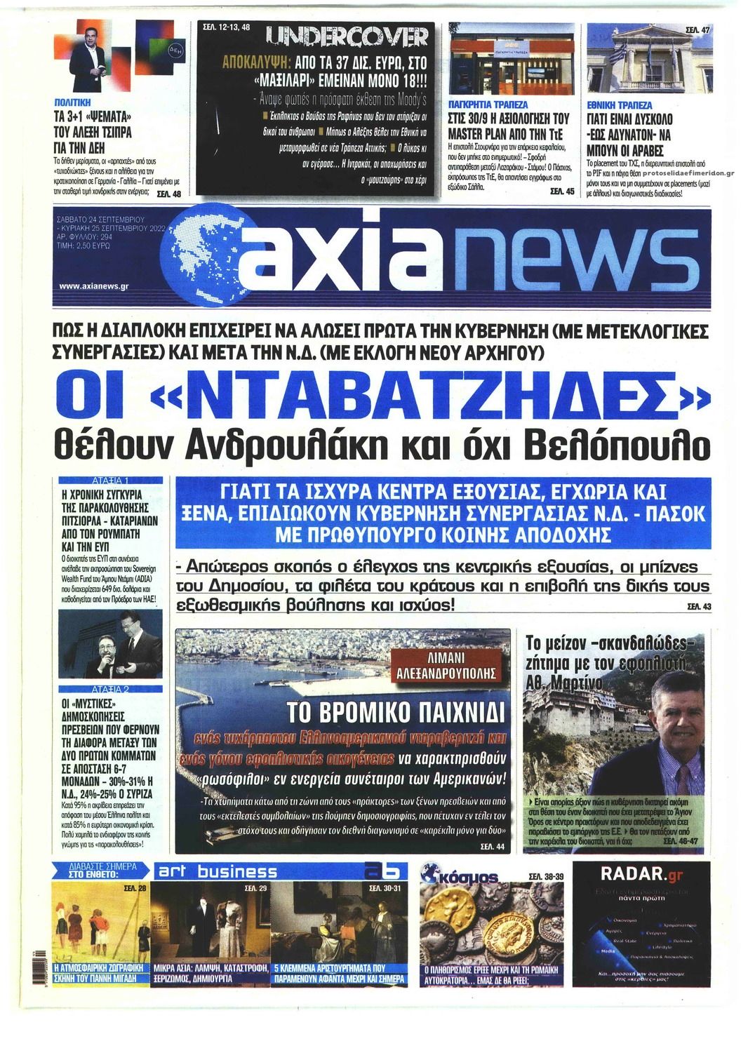 Διαβάστε το πρωτοσέλιδο της εφημερίδας Αξία News