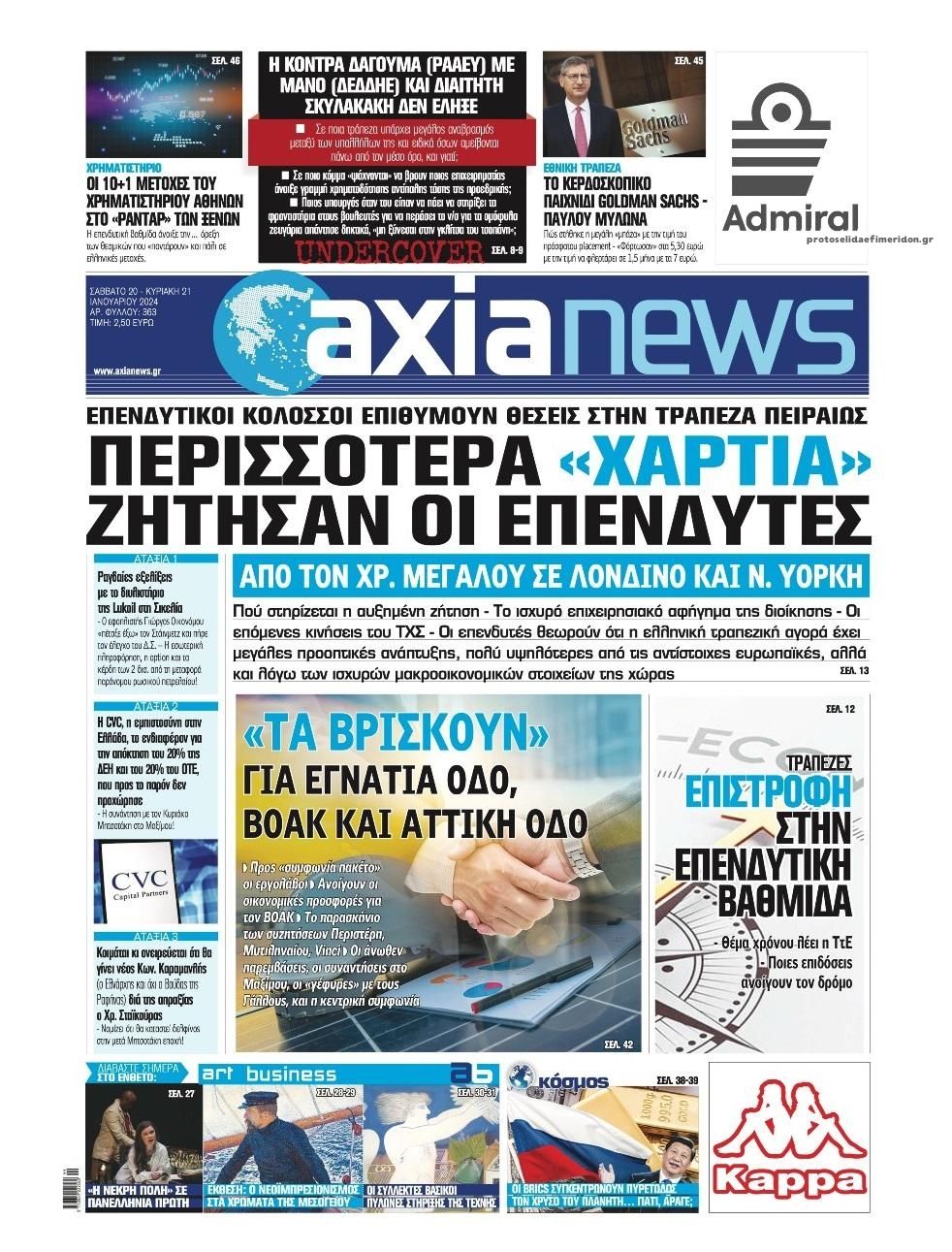 Διαβάστε το πρωτοσέλιδο της εφημερίδας Αξία News