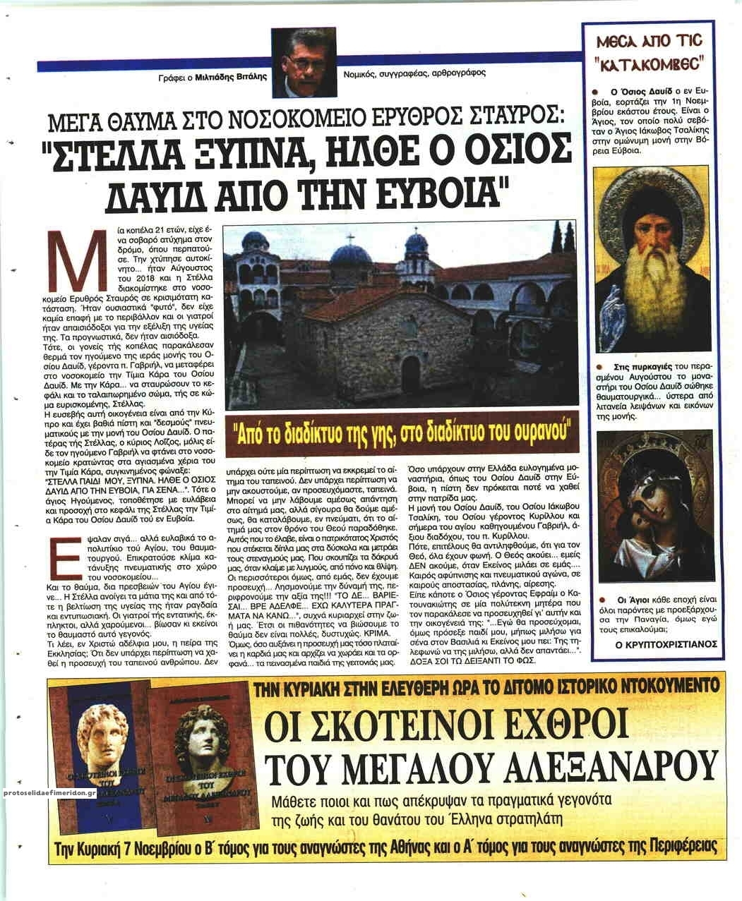 Διαβάστε το πρωτοσέλιδο της εφημερίδας Ελεύθερη Ώρα