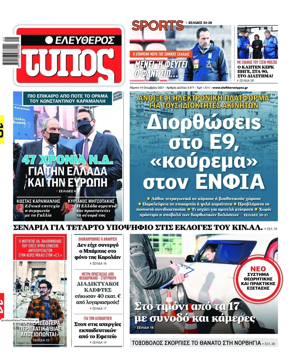 Διαβάστε το πρωτοσέλιδο της εφημερίδας Ελεύθερος Τύπος