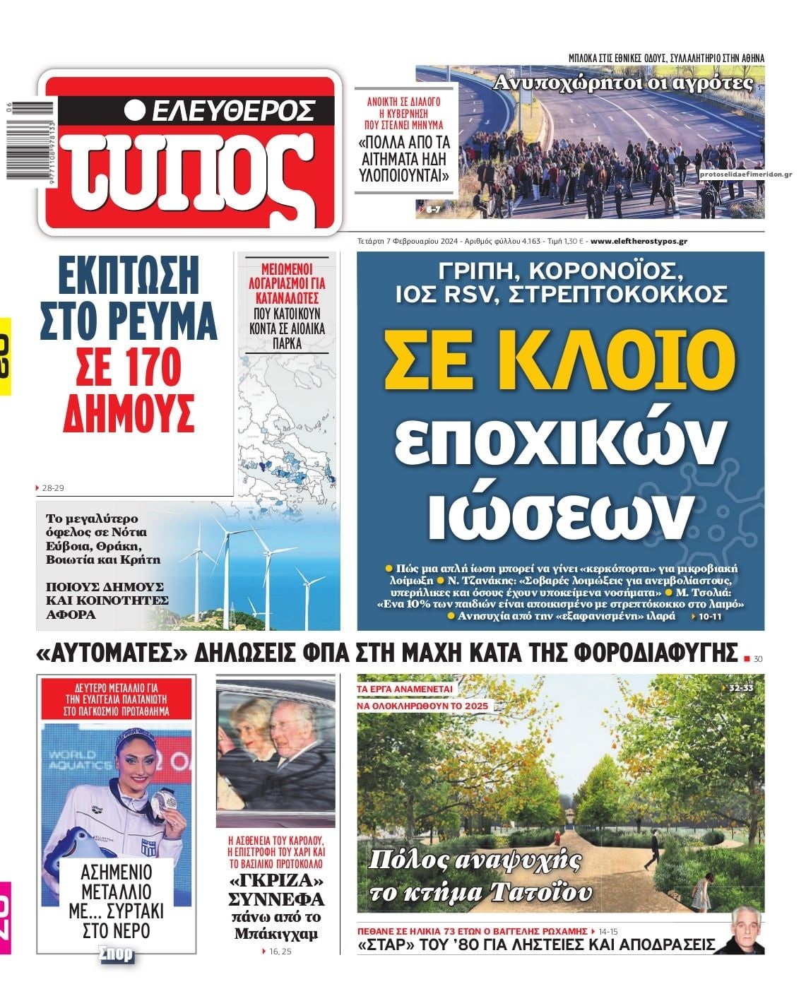 Διαβάστε το πρωτοσέλιδο της εφημερίδας Ελεύθερος Τύπος