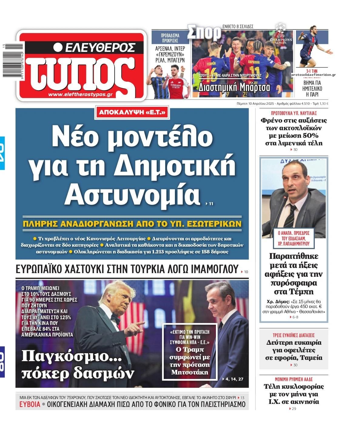 Διαβάστε το πρωτοσέλιδο της εφημερίδας Ελεύθερος Τύπος