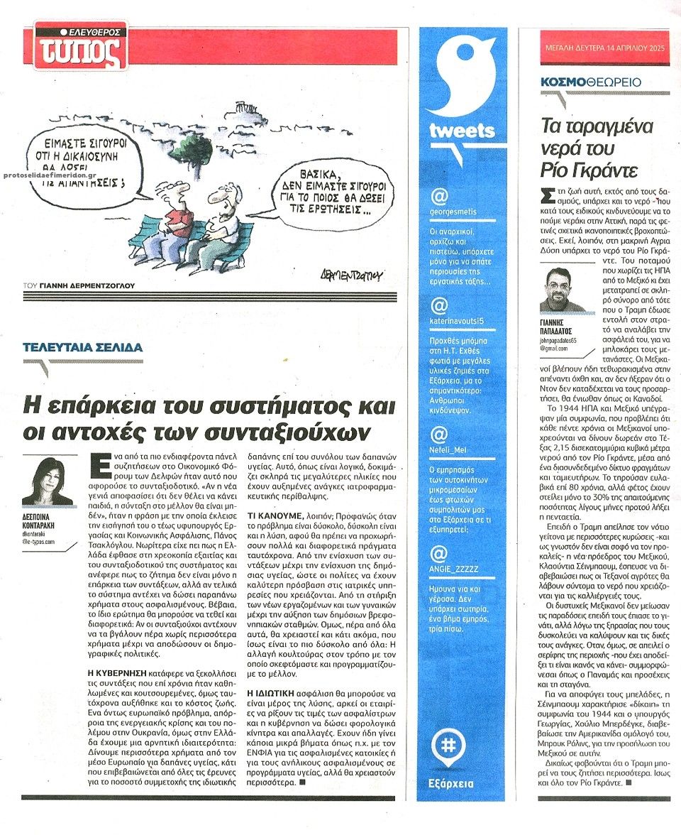 Διαβάστε το πρωτοσέλιδο της εφημερίδας Ελεύθερος Τύπος