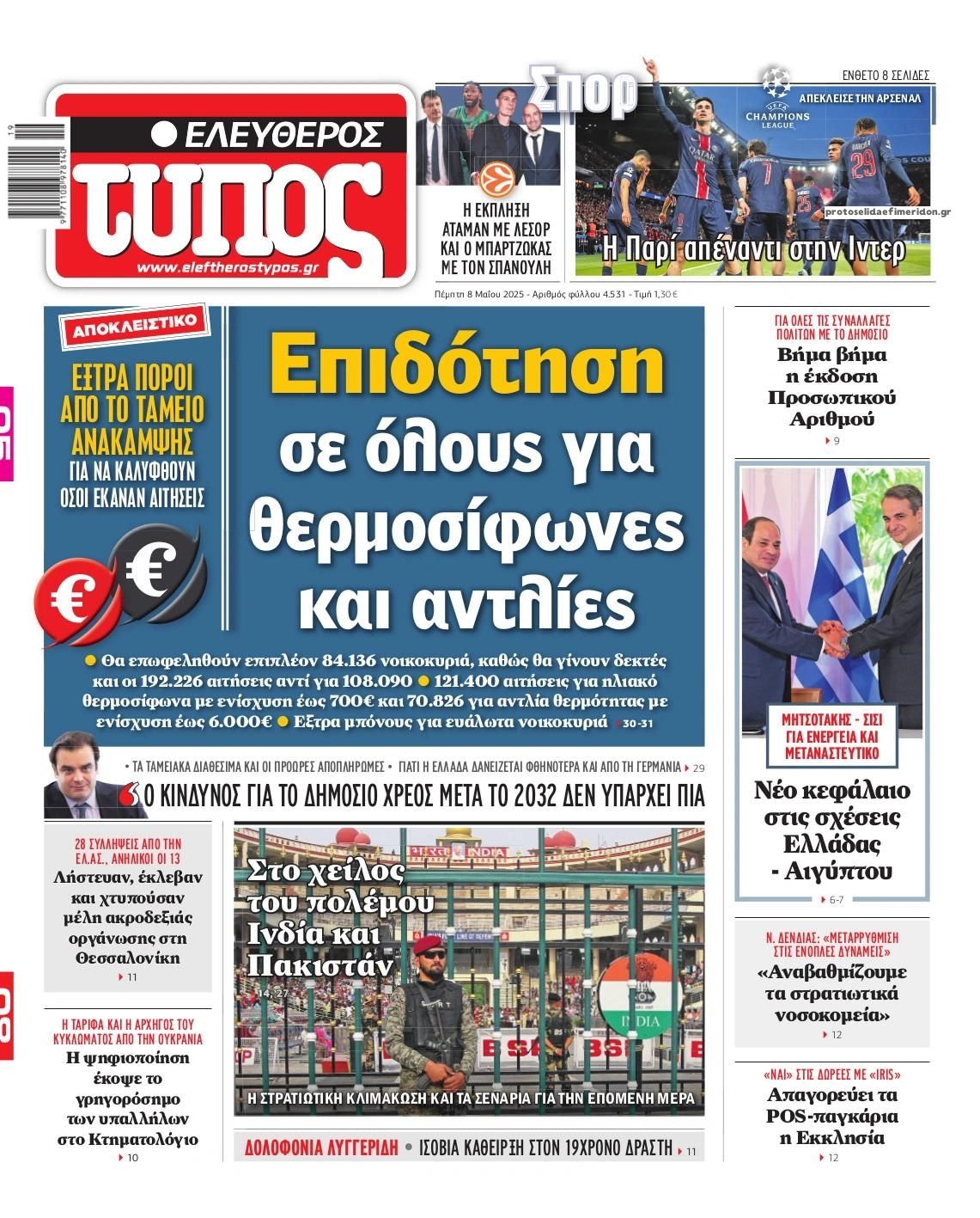 Διαβάστε το πρωτοσέλιδο της εφημερίδας Ελεύθερος Τύπος