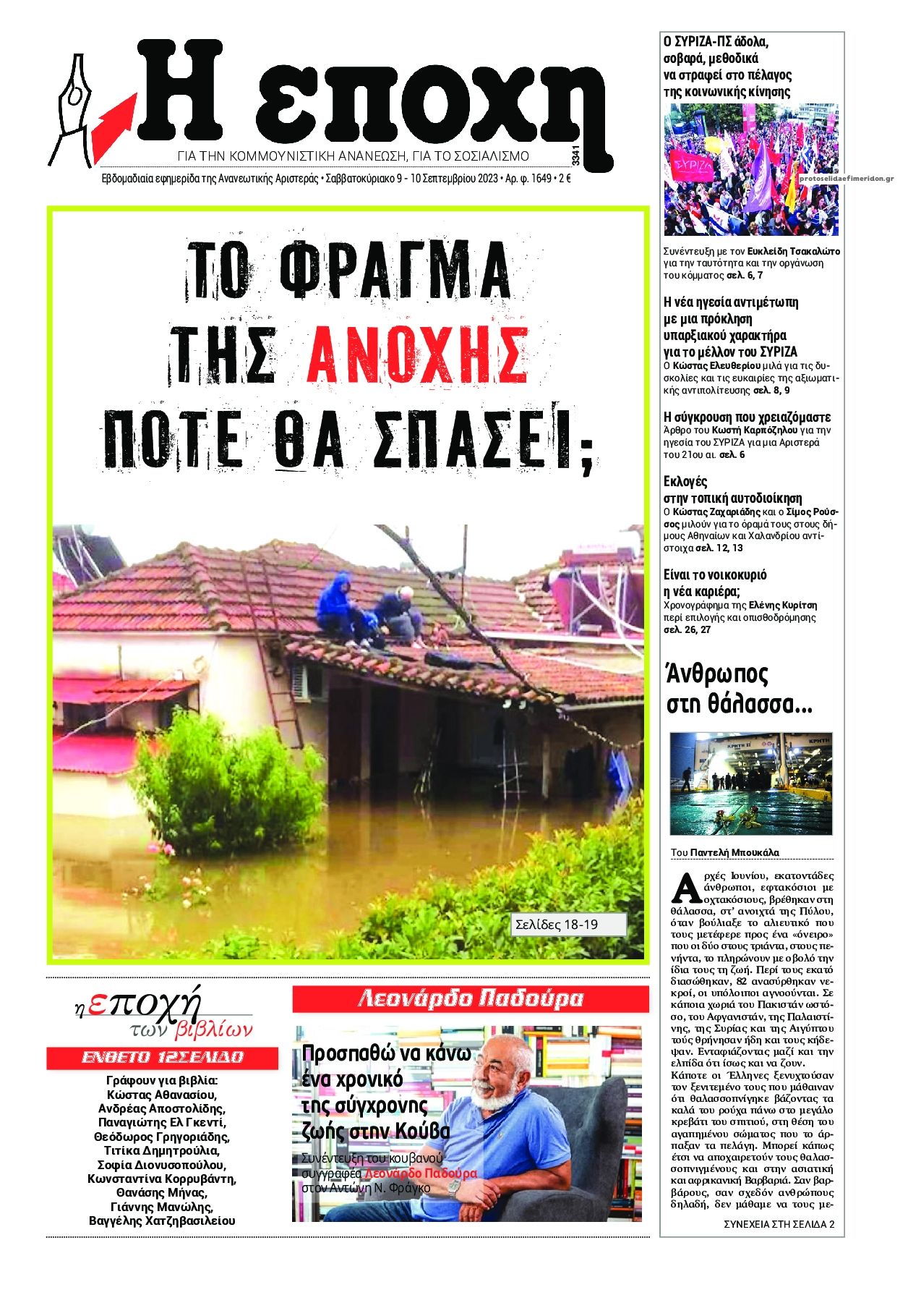Διαβάστε το πρωτοσέλιδο της εφημερίδας Εποχή