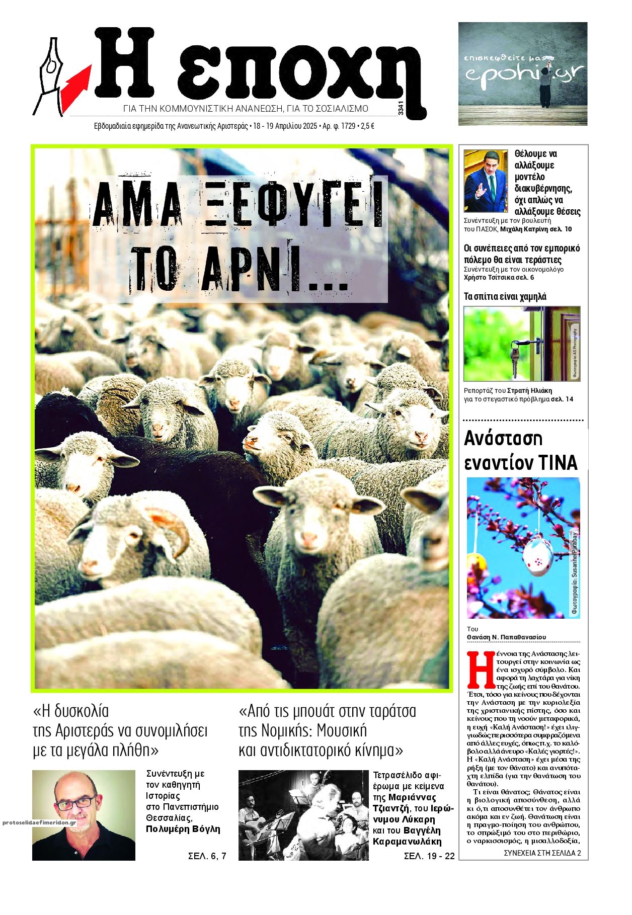 Διαβάστε το πρωτοσέλιδο της εφημερίδας Εποχή
