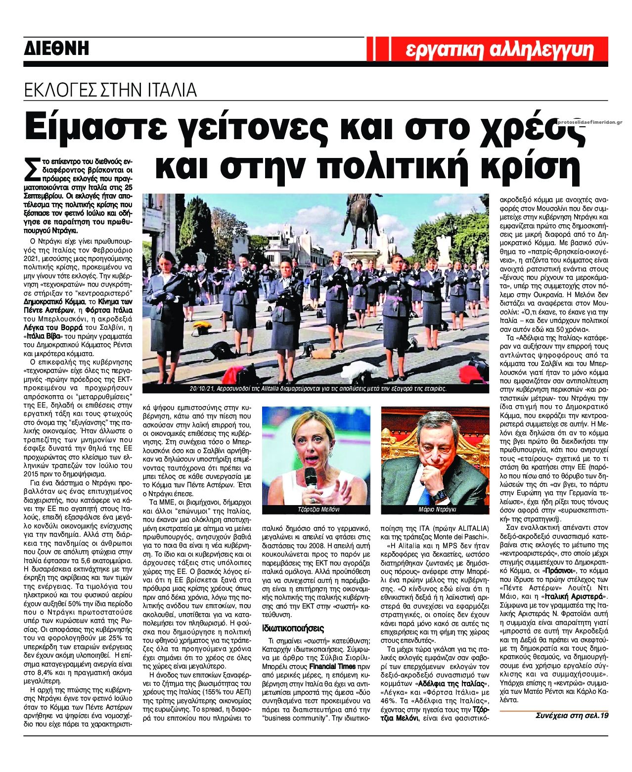 Διαβάστε το πρωτοσέλιδο της εφημερίδας Εργατική Αλληλεγγύη