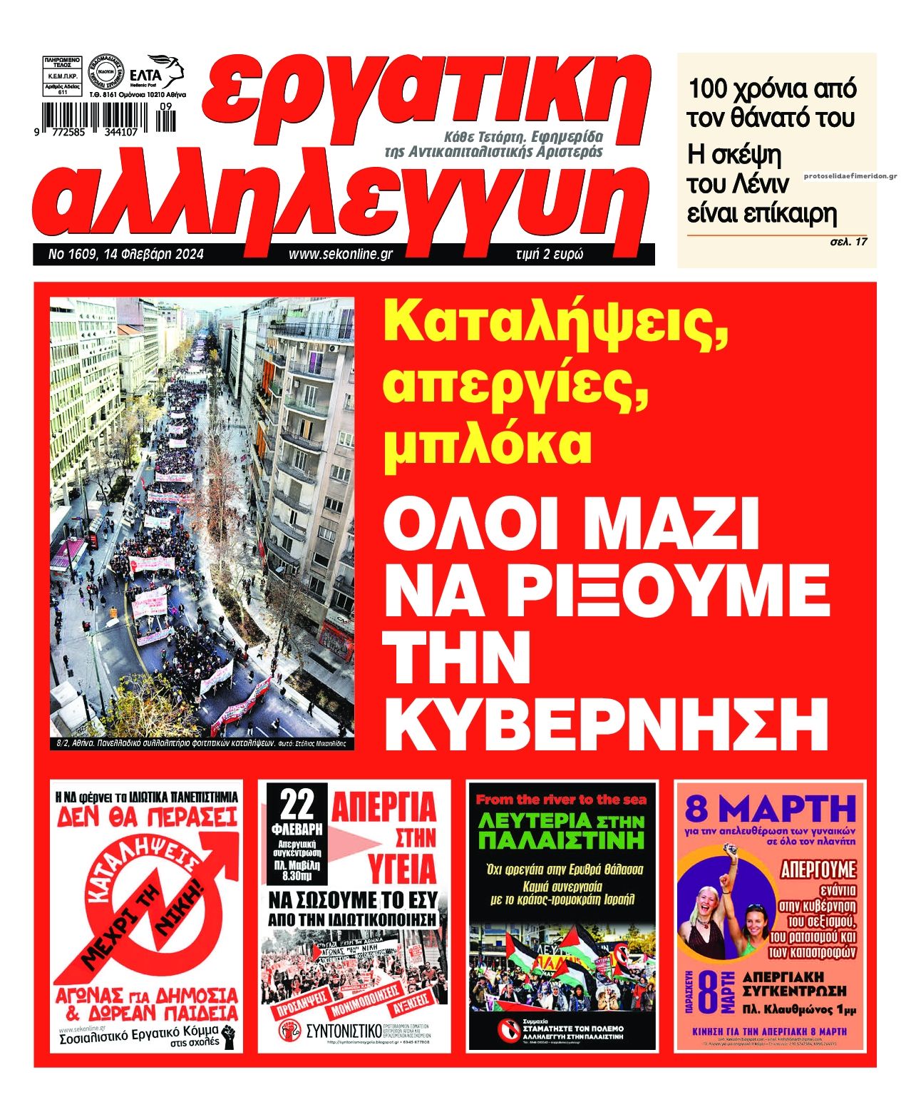 Διαβάστε το πρωτοσέλιδο της εφημερίδας Εργατική Αλληλεγγύη