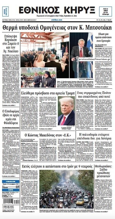 Διαβάστε το πρωτοσέλιδο της εφημερίδας Εθνικός Κήρυξ