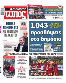 Διαβάστε το πρωτοσέλιδο της εφημερίδας Των συντακτών