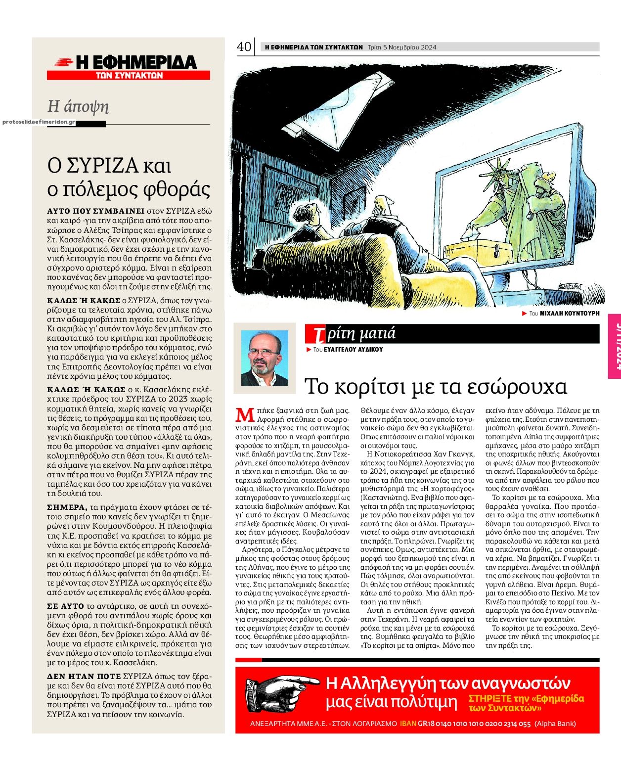 Διαβάστε το πρωτοσέλιδο της εφημερίδας Των συντακτών
