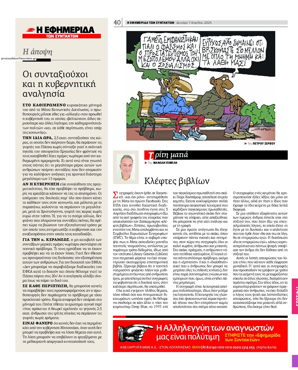 Διαβάστε το πρωτοσέλιδο της εφημερίδας Των συντακτών