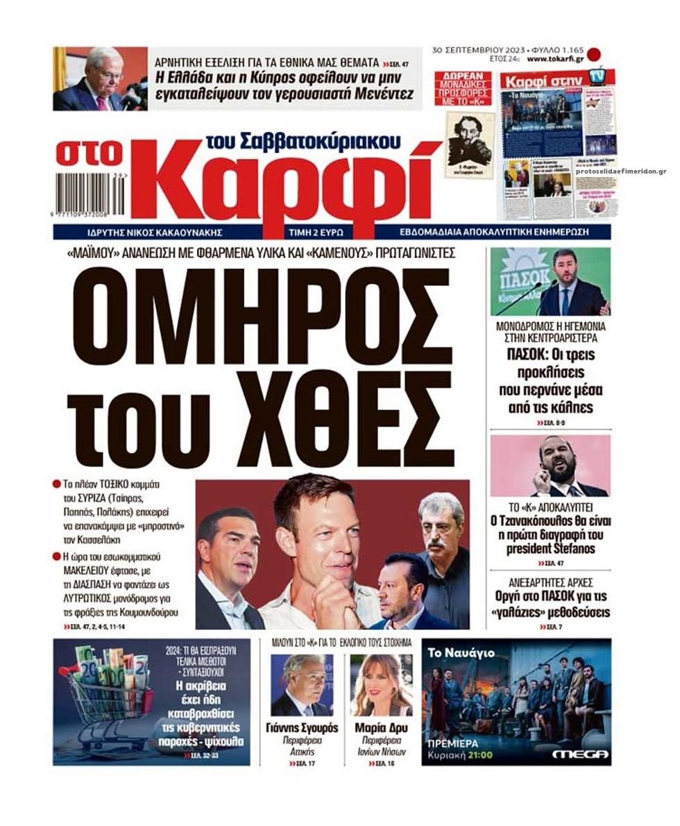 Διαβάστε το πρωτοσέλιδο της εφημερίδας Το Καρφί