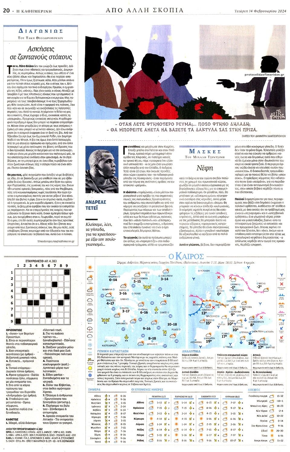 Διαβάστε το πρωτοσέλιδο της εφημερίδας Καθημερινή