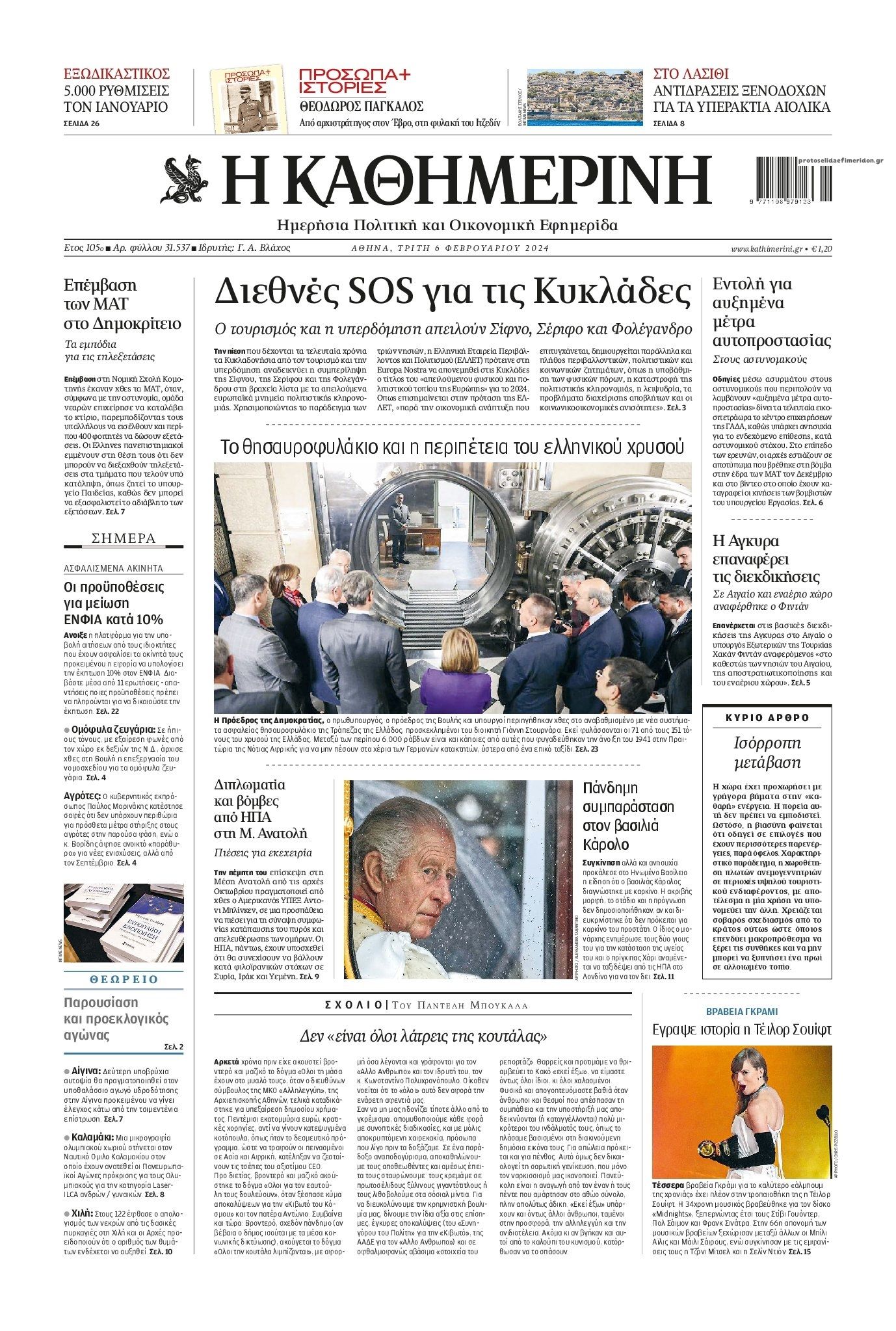 Διαβάστε το πρωτοσέλιδο της εφημερίδας Καθημερινή